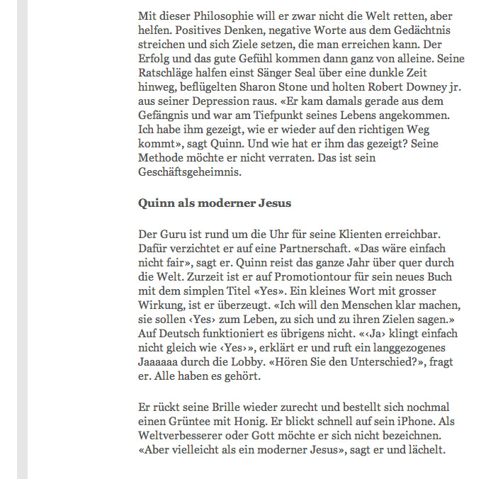 Gary Quinn speaks to 20 Minuten about his life coaching techniques he uses with Hollywood celebrities.